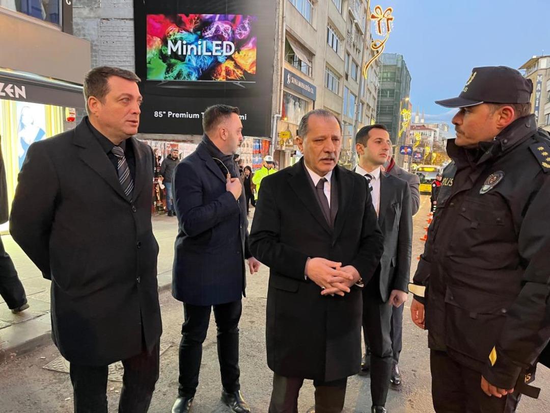 Bölgede görev yapan polislerden uygulanacak tedbirler hakkında bilgi alan Yıldız, esnaf ve vatandaşların da yeni yılını kutladı.