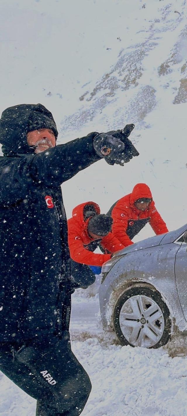 Yolda mahsur kalan araçlar, AFAD İl Müdürlüğü Birlik Müdürlüğü koordinesindeki ekipler tarafından zor şartlar altında kurtarıldı.