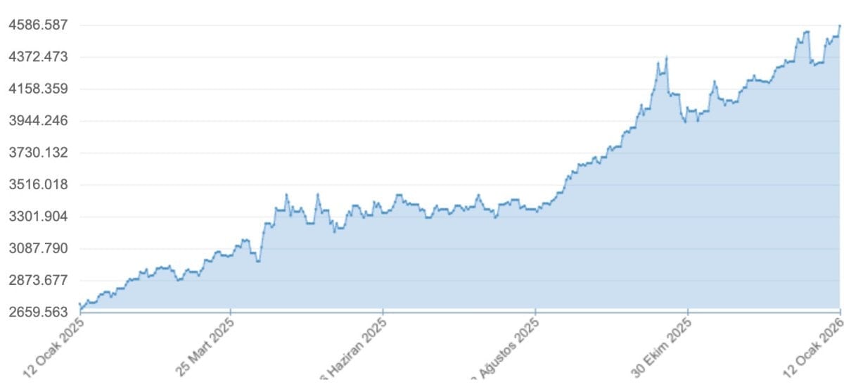Ons altın altının onsu 4 bin 601,3 dolarla rekor kırdı. Bugün ise altının onsu cuma günkü kapanışa göre yüzde 1,8 artışla 4 bin 583 dolardan seyrediyor.