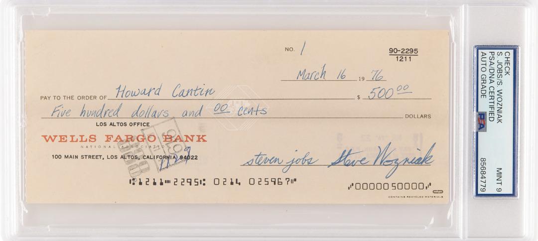 Çek, Steve Jobs ve Steve Wozniak’ın Apple’ın ilk banka hesabını açmasından kısa bir süre sonra, baskılı devre kartı tasarımcısı Howard Cantin’e verilmiş. Cantin, Wozniak’ın Apple-1 şemasını üretilebilir bir baskılı devre kartına dönüştürmekten sorumluydu ve bu çalışma Apple’ın ilk ticari ürününe giden yolu açmıştı.