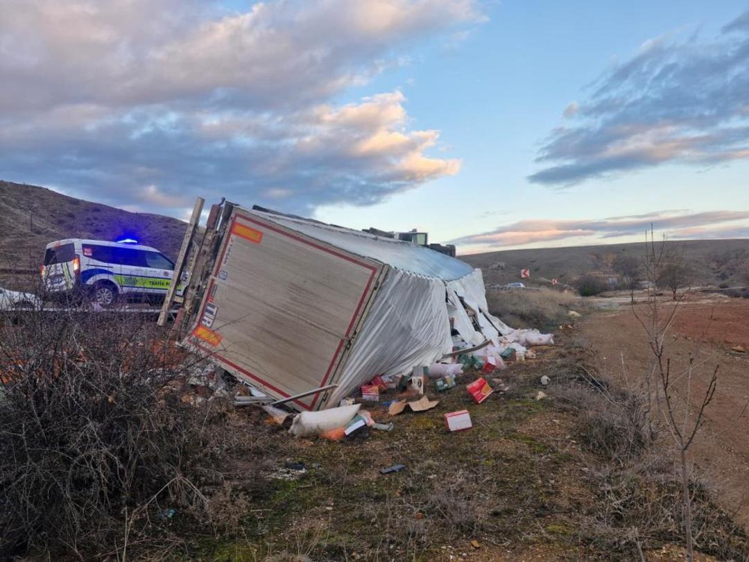 Tır şarampole devrildi, sürücü yara almadan kurtuldu