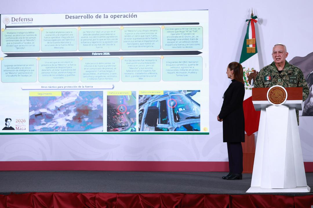 Meksika‘da öldürülen Jalisco Yeni Nesil Karteli (CJNG) lideri “El Mencho” lakaplı Nemesio Oseguera’nın ardından ülke genelinde karışıklık devam ederken, Meksika Devlet Başkanı Claudia Sheinbaum ile Meksika Savunma Bakanı Ricardo Trevilla Trejo ortak basın toplantısı düzenledi.
