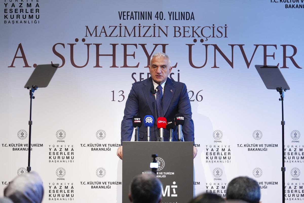 Bakan Ersoy, “Bizler üstadımızın ‘Mazisine sahip çıkan istikbaline yön verir.’ düsturuyla hareket ediyoruz. Nesiller ve devirler arasındaki ilim, irfan, estetik köprüleri kurma amacıyla ortaya koyduğu hedefler bugün de önemini korumaktadır. Çünkü biliyoruz ki kökleriyle bağını koparan toplumların geleceğe güvenle yürüyebilmesi mümkün değildir. Bu sergi vesilesiyle yalnızca Ahmet Süheyl Ünver hocamızı anmakla kalmıyor, aynı zamanda onun temsil ettiği ilim, estetik ve vefa anlayışını da yeniden hatırlıyoruz. Bu kıymetli külliyatı gençlerimizin görmesini çok isterim. İnanıyorum ki bu sergi ziyaretçilerine yalnızca geçmişi göstermekle kalmayacak, aynı zamanda onları düşünmeye, araştırmaya ve bu büyük mirasa sahip çıkmaya davet edecektir. Bu büyük kültür insanının hatırasına yapacağımız faaliyetler bu sergiyle de sınırlı olmayacak. Sergi süresince kıymetli hocamızı yakından tanıyan uzman konukların, talebelerinin ve dostlarının hatıralarıyla programlar düzenleyeceğiz. Kıymetli hocamız adına hazırladığımız özel kitabımızı da iki ay içerisinde yayınlamış olacağız.” diye konuştu.